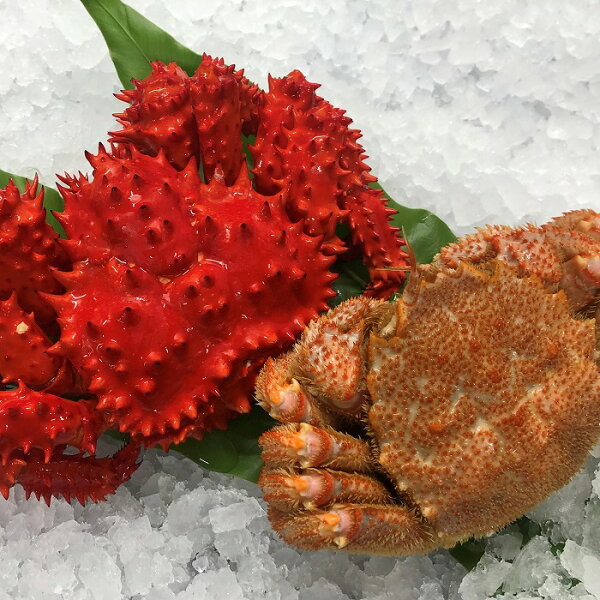 [北海道根室産]花咲がに500g前後×4尾と毛ガニ350g前後×4尾セット D-54006 花咲がにと毛がにをボイルし急速冷凍しました。