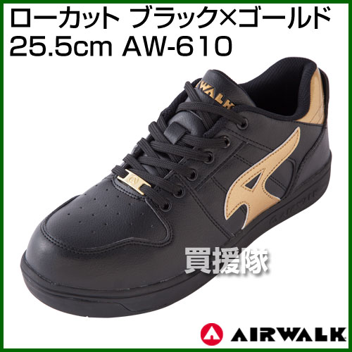 仕様 メーカー AIR WALK 品名 軽量プロテクティブスニーカー ローカット ブラック×ゴールド 25.5cm 品番 AW-610 JANコード 4518406616115 カラー ブラック×ゴールド 先芯 樹脂先芯 重量 約340g(26.0cm/片足)